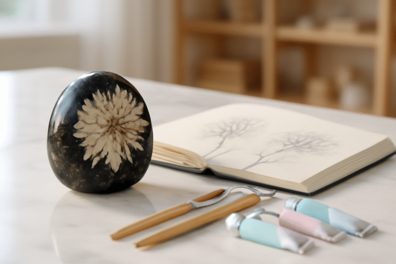 Purification par fumigation (sauge) | Doux pour les inclusions florales; élimine efficacement les énergies négatives. | Aucune immersion dans l’eau ou sel humide. |