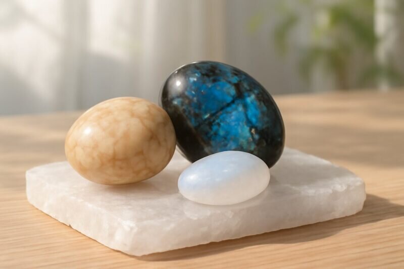 - La pierre de lune, qui favorise l’intuition et la douceur intérieure.