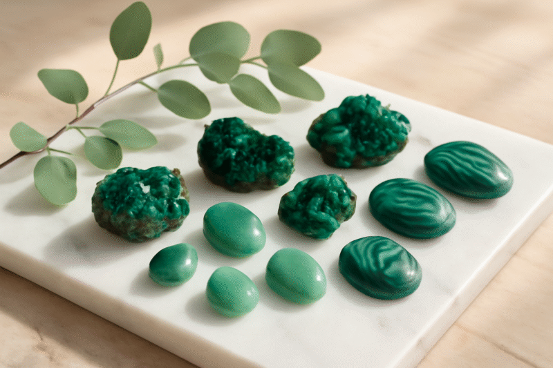 Dioptase vs autres pierres vertes : malachite et aventurine en ligne de mire