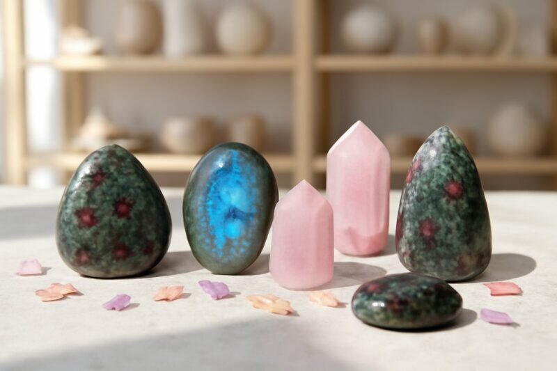 PORTEZ L’ÉCLOGITE AVEC LABRADORITE ET QUARTZ ROSE POUR SYNERGIE ÉNERGÉTIQUE OPTIMALE