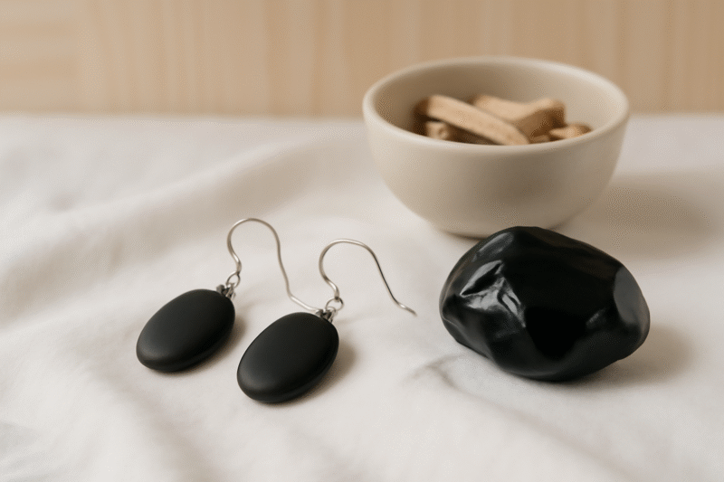 🛡️ Sur le plan scientifique, le jais est un charbon fossile naturel reconnu pour sa légèreté et sa texture mate. Cependant, son contact prolongé avec la peau peut provoquer chez certaines personnes sensibles des réactions allergiques ou des irritations cutanées. Ces effets secondaires restent rares mais méritent vigilance, surtout si vous portez la pierre directement sur la peau.