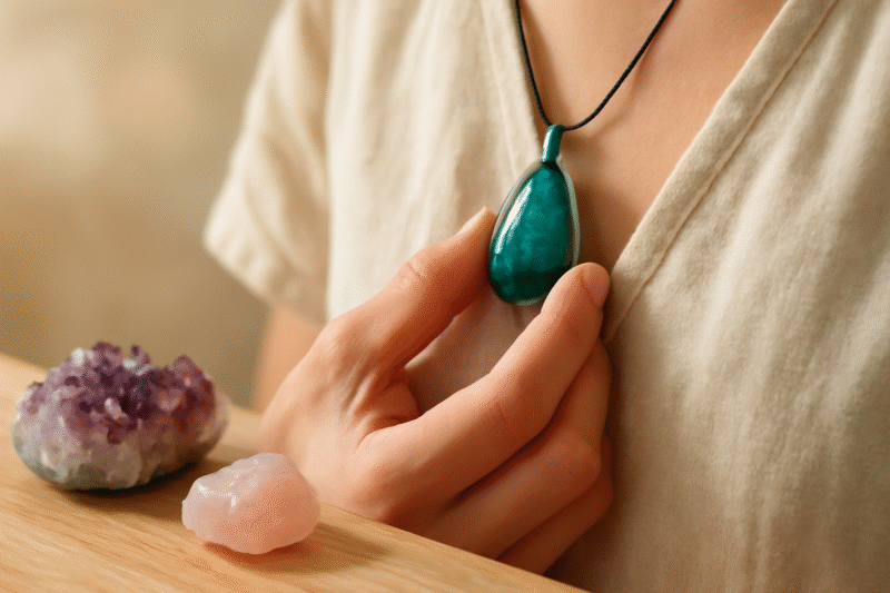 💎 Porter la dioptase près du cœur, sous forme de pendentif ou dans une poche, permet d’entretenir une connexion constante avec ses vertus apaisantes. La méditation avec cette pierre facilite l’expression des émotions refoulées et l’acceptation des propres limites. Un rituel simple consiste à tenir la pierre dans la main lors d’une séance d’écriture sur ses blessures passées ou pendant quelques minutes de respiration consciente chaque jour — des gestes modestes mais puissants pour ancrer le pardon dans le quotidien.