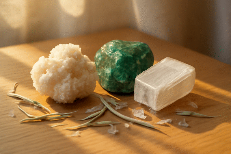 Sélénite | Lâcher prise, apaisement profond | Aide à purifier les émotions lourdes et stabiliser l’esprit |