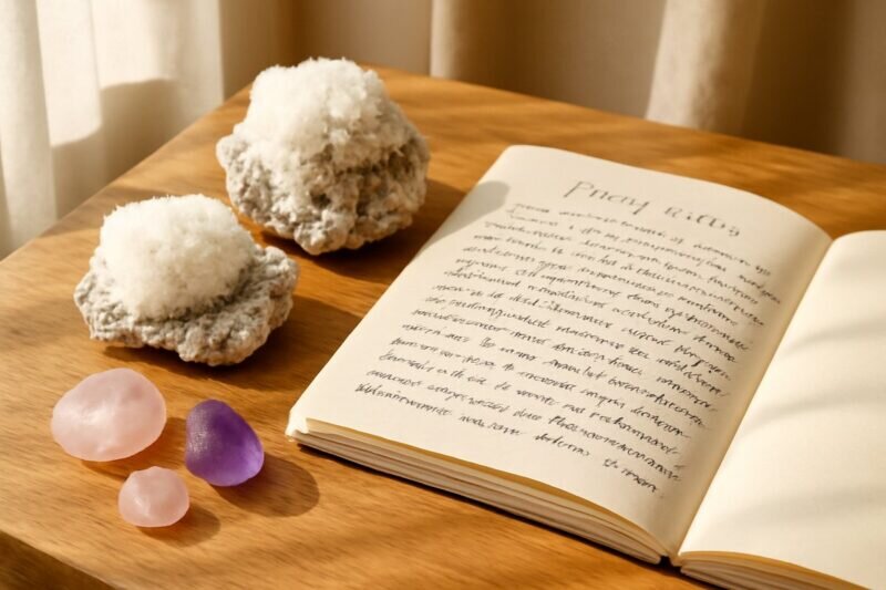 Diversifiez vos rituels en associant votre okénite à un bol chantant tibétain ou à une fumigation douce (sauge blanche). Pour approfondir le sujet des méthodes douces de purification, consultez notre article dédié :purification cristaux – guide complet.